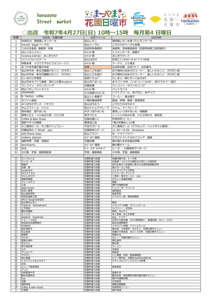 このたびは2025年11月23日(日)開催のまつやま花園日曜市の出店、誠にありがとうございます。