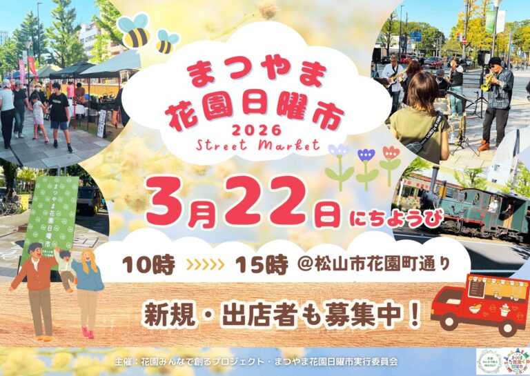 2026年3月22日日曜日、まつやま花園日曜市を開催します! まつやま花園日曜市は、今後も毎月第4日 […]
